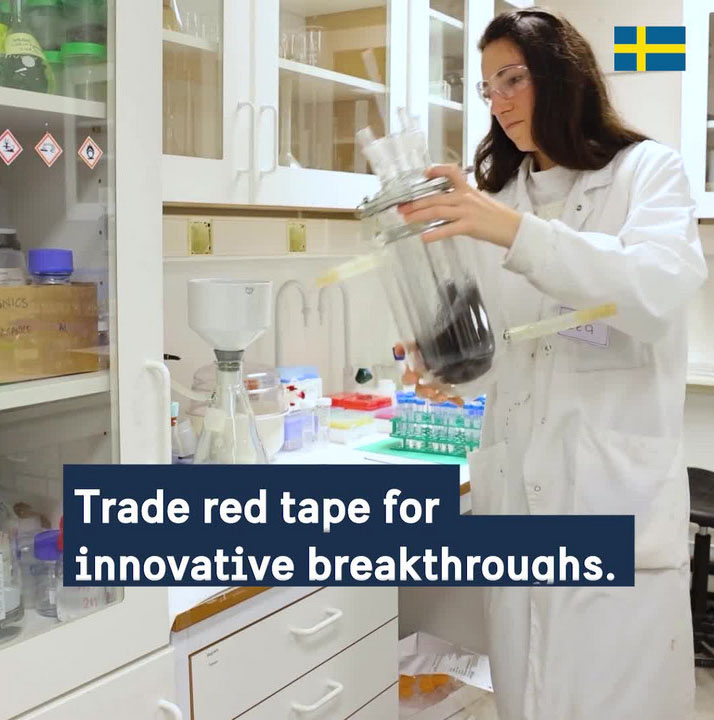 Video 2: Own your research. Work in Sweden. In Sweden your work belongs to you. Our legislation is structured to benefit researchers, allowing you to retain the rights to your discoveries. This approach gives you the opportunity to convert your research into market-ready solutions.
