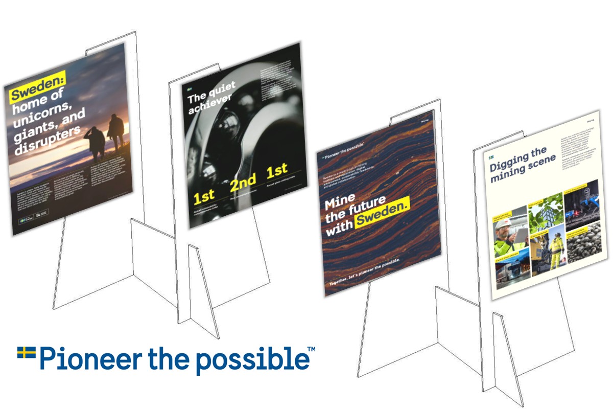 Agriculture and food Batteries Digitech Energy Forestry Industrials Life science Mining Transport The exhibition is available as high-resolution PDF files in English and as word files for translation. When you translate the material to your local language, always contact the Swedish Institute for information about existing translations and help creating print files. Printing is done locally.