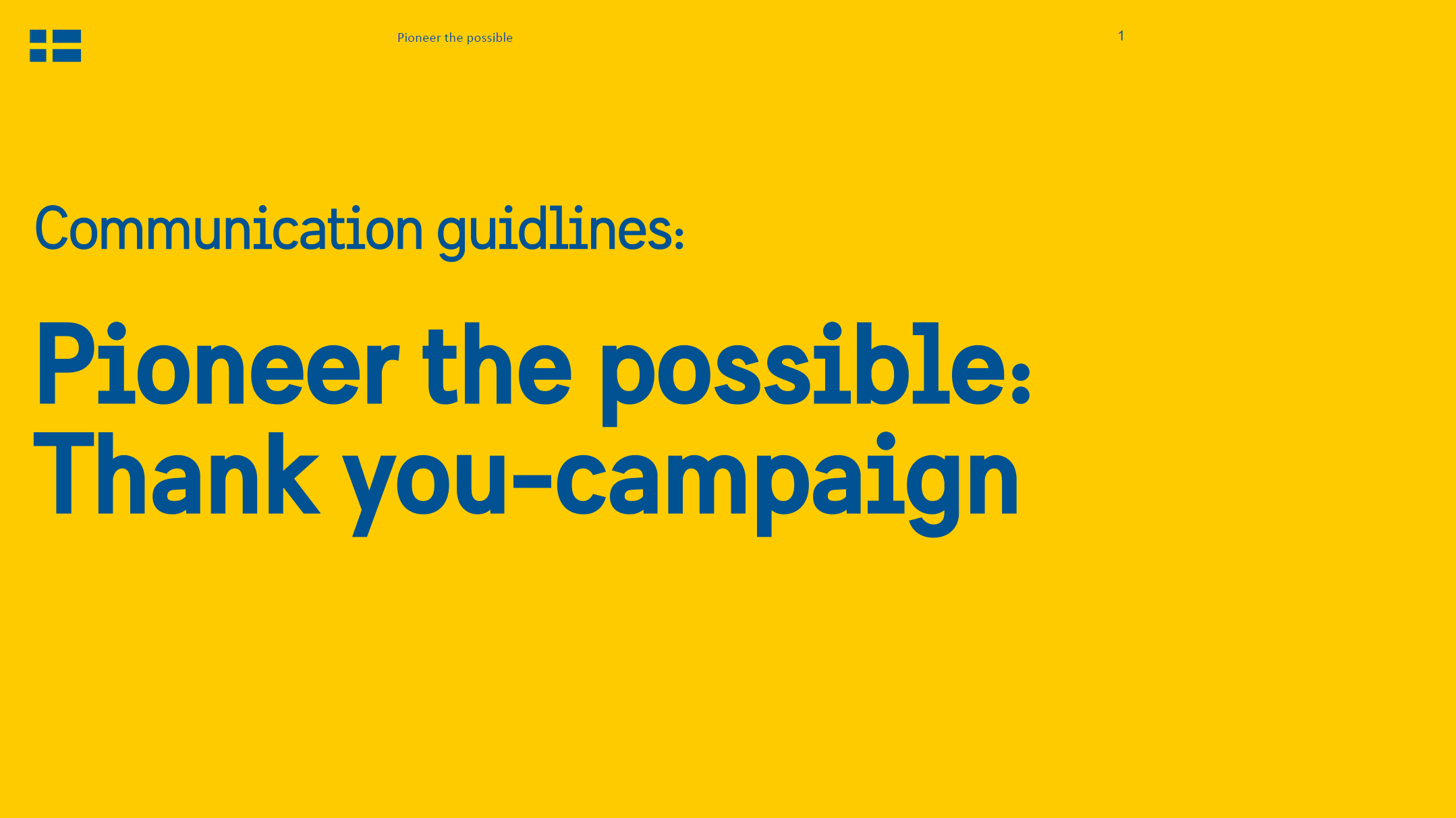 Trade promotion campaigns – Promote green and digital transition Log in and apply Example of a Thank you-campaign in Dublin. About this toolkit This toolkit offers ready-to-use campaigns for social and traditional media that highlights Swedish innovation and climate solutions under the Pioneer the Possible concept. Use them to attract trade and investment to Sweden by promoting Swedish companies, stories, and technologies driving the green and digital transition – from electrification and circularity to AI and clean industry. Let’s show the world what’s possible – together.